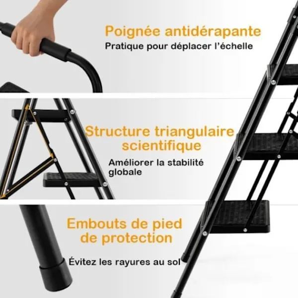 Den hopfällbara COSTWAY pallen är konstruerad av en robust metallram för stor stabilitet. Den har breda, halkfria pedaler för säker användning. Det EVA-skum vadderade handtaget är stadigt att greppa. Halkfria fotstöd förbättrar avsevärt den totala stabiliteten.