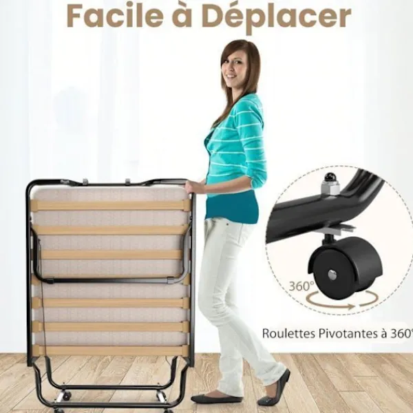 > LIT TILLVERKAD I ITALIEN! > Viktlös konstruktion för platsbesparing och praktisk förvaring > 4 flexibla hjul för att underlätta mobilitet och bärbarhet > 10 cm hög densitet skum madrass ger en bra sömnmiljö > Perfekt för camping, kontor, hem > Material: Stål, Minneskum, Polyuretan > Produktmått: 90 x 200 x 41 cm (L x B x H) > Max vikt: 120 kg.