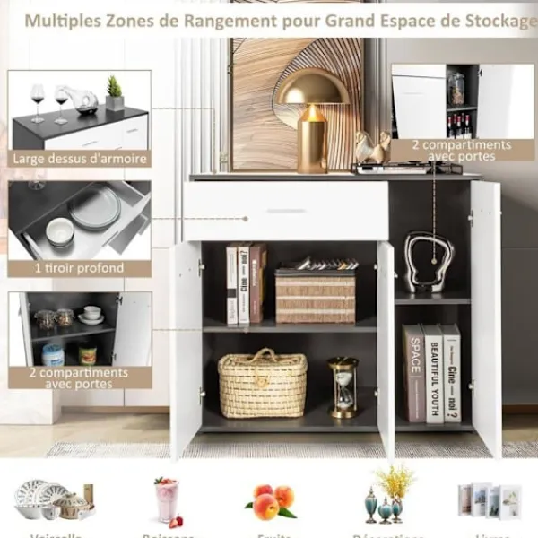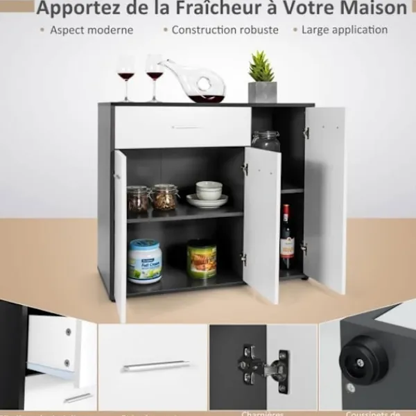 Höger fack levereras med en justerbar hylla i 3 positioner >Stabilitets- och säkerhetsanordning för att säkerställa stabilitet och säkerhet >Halkfria fötter längst ner för att undvika att repa golvet >Eleganta metallhandtag och metallhängtillbehör för enkel öppning och st st st ä st >Ideal för kök, vardagsrum, matrum, kontor och sovrum