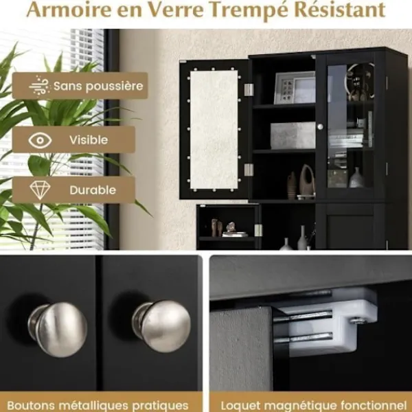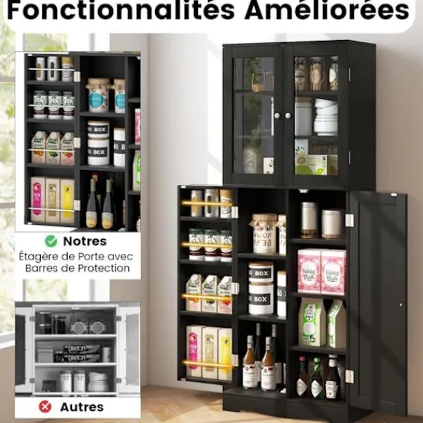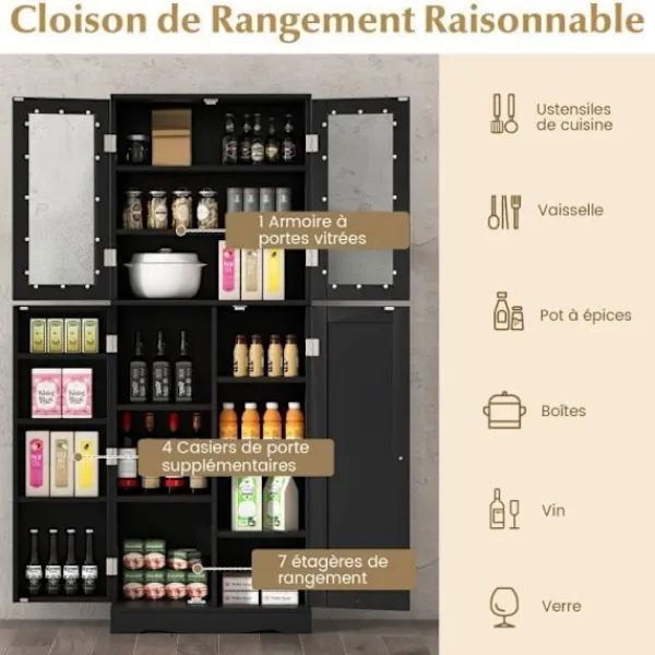 Denna COSTWAY köksskänk är perfekt för ditt kök, vardagsrum, matsal eller sovrum. Den består av ett 1 vitrinskåp med hyllor, ett rejält dörrskåp med 7 förvaringshyllor och 4 extra dörrhyllor bakom sidodörrarna.