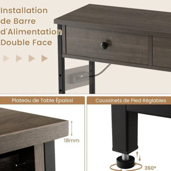 >Justerbara fotkuddar håller bordet stabilt