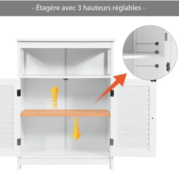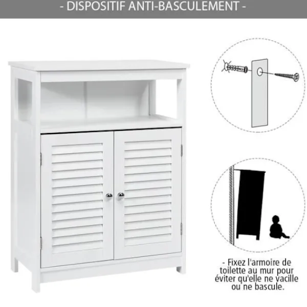 Den öppna hyllan och tvådörrarsskåpet ger gott om förvaringsutrymme Material: MDF Mått: 60 x 30,5 x 80 cm Lastkapacitet per hylla: 35 kg Lastkapacitet per hylla: 10 kg En hylla justerbar inredning gör att du kan justera höjden efter föremålen En antidumpningsanordning förhindrar vibrationer och tippning av möbeln Två släta metallhandtag