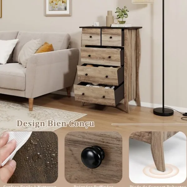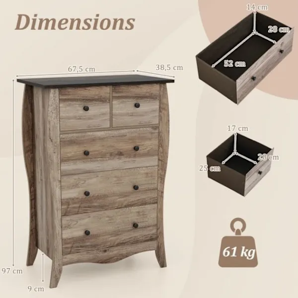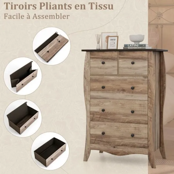 Bli först med att recensera ”COSTWAY Skåp>byrå med 5 hopfällbara tyglådor, träskiva, rustik förvaringsenhet för sovrum, vardagsrum, brun” Avbryt svar