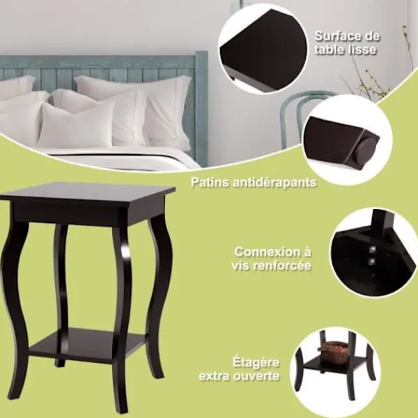 40×40 cm fyrkantig topp med en maximal lastkapacitet på 15 kg 2-vånings förvaringsutrymme, för att ge mer förvaringsutrymme Öppna hyllor för enkel åtkomst till ofta använda föremål Halkfria fotkuddar skyddar ditt golv när du reser. Den designade räta vinkeln passar perfekt i alla hörn