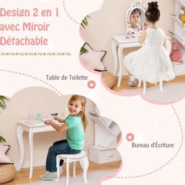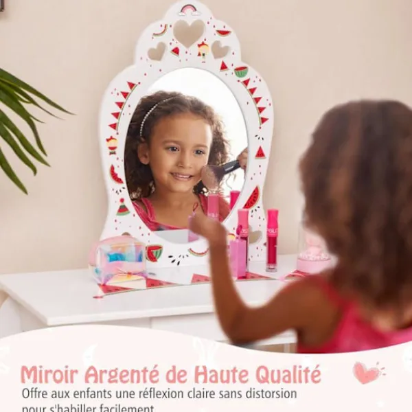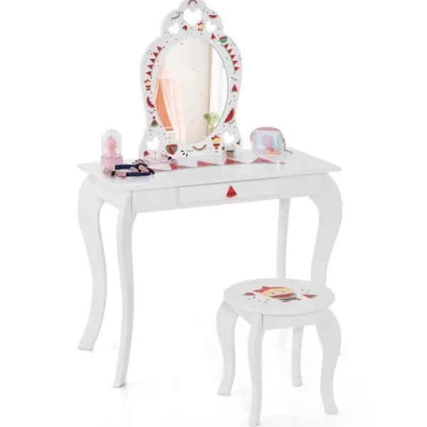 Bli först med att recensera ”COSTWAY Sminkbord>2 i 1 toalettbord för barn med pall och avtagbar spegel, sminkbord med låda och anti-tilt-enhet” Avbryt svar
