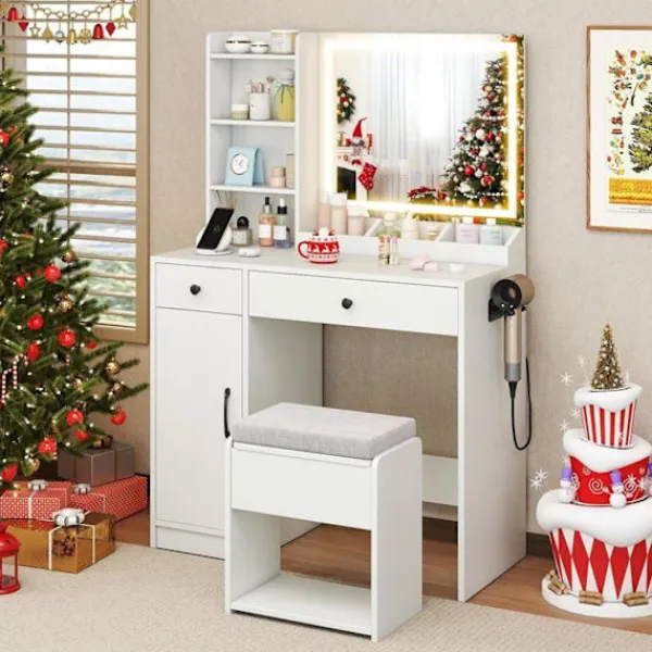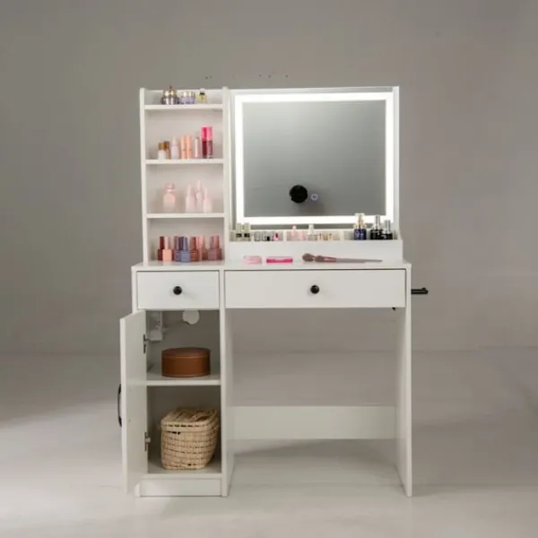>Utrustad med en belyst spegel med justering av färg och ljusstyrka