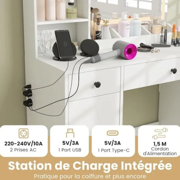 >Designad med en hållare för hårtork och en laddningsstation