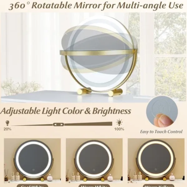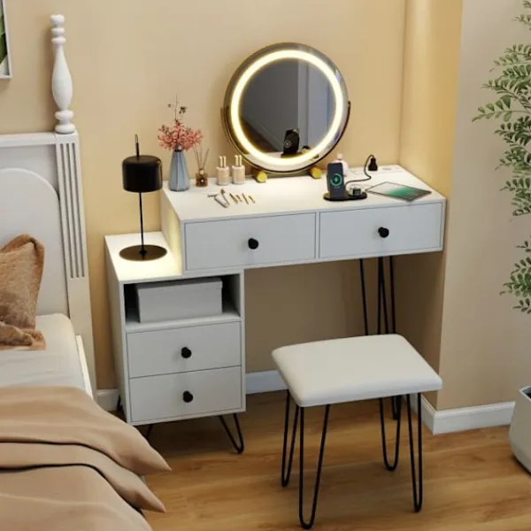 >Dimensioner av sminkbord: 98 x 40 x 120 cm (L x B x H)