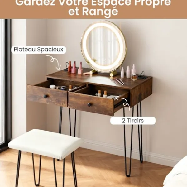 >Upplyst sminkspegel med justerbar färg och ljusstyrka