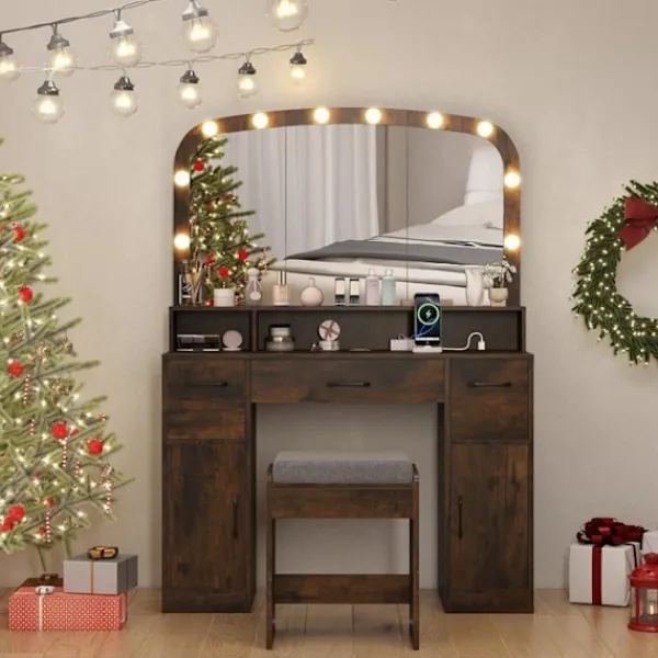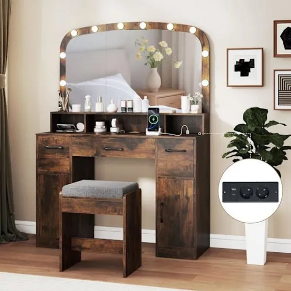 >3 öppna fack, 3 lådor och 2 skåp erbjuder ett stort lagringsutrymme