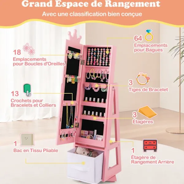 Bli först med att recensera ”COSTWAY Sminkbord>Smyckesskåp för barn, fristående spegel med stor förvaringskapacitet och vridbar bas, rosa” Avbryt svar
