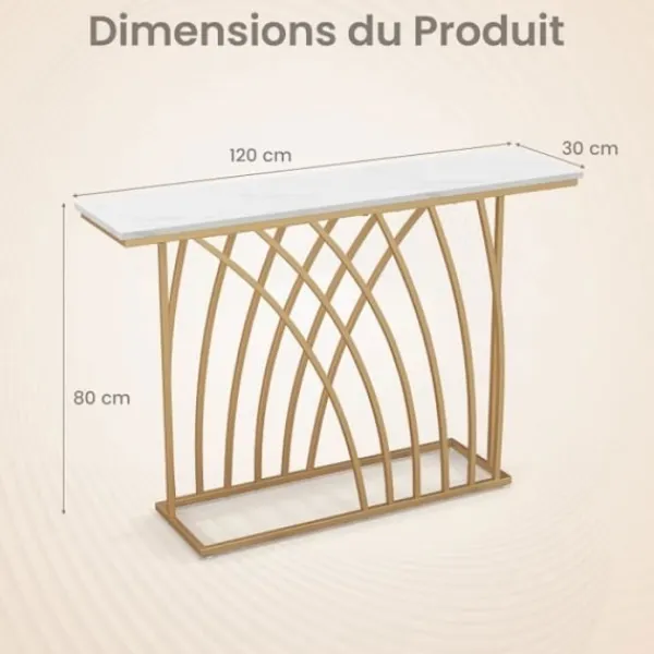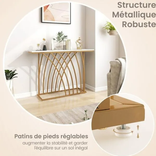 COSTWAY-konsolbordet i faux marmor är en elegant och mångsidig möbel som anpassar sig till olika inredningsstilar. Tillverkad av MDF och metall erbjuder den stor stabilitet tack vare sina justerbara glid och tippskydd. Med sina mått på 120 x 30 x 80 cm är den perfekt som entrébord eller gavelbord.