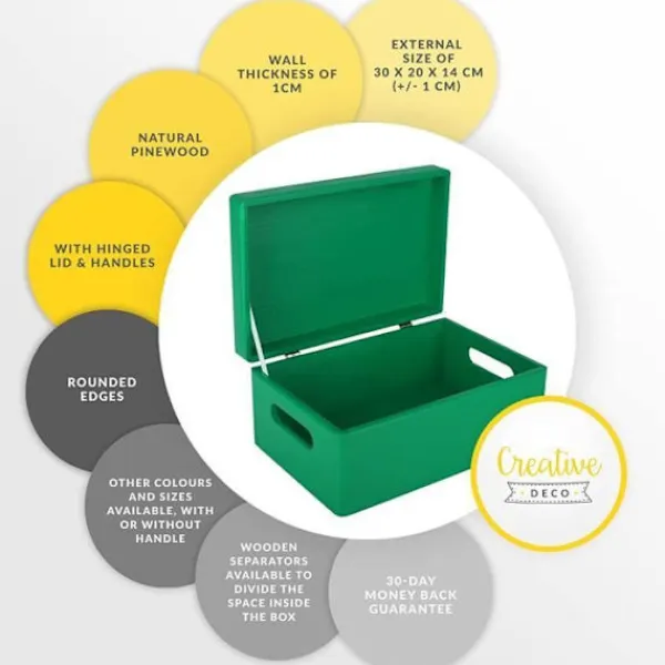 Denna stora förvaringslåda i massivt trä från Creative Deco är idealisk för att förvara och organisera alla dokument, värdesaker, leksaker, kläder, accessoarer och smycken. Med yttermått på 30 x 20 x 14 cm och innermått på 27,5 x 17,5 x 9,8 cm är den lätt och har en väggtjocklek på 1 cm samt en 3 mm plywoodbotten.