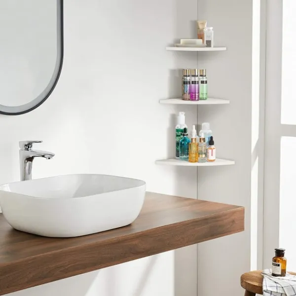 Flytande hyllor: Tillverkade av högkvalitativ PVC, dessa hörnhyllor är mycket hållbara, lätta att rengöra och använda.