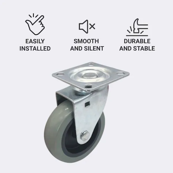 Varje metallplatta har 4 monteringshål. material: grå gummihjul, plast – svart del, metall. hjulytan är slät, vilket säkerställer lätt rullning och inget bullrigt ljud