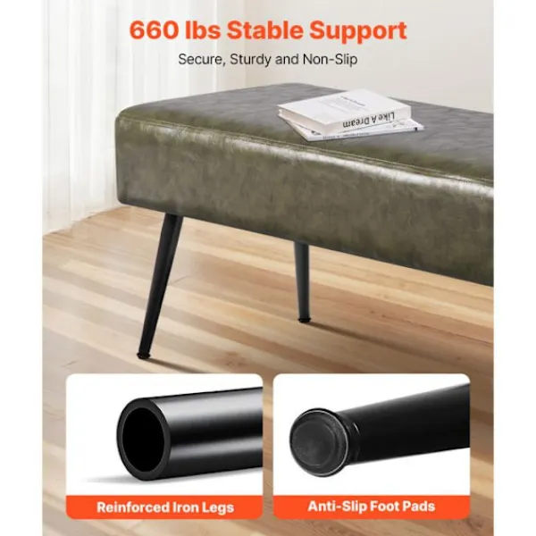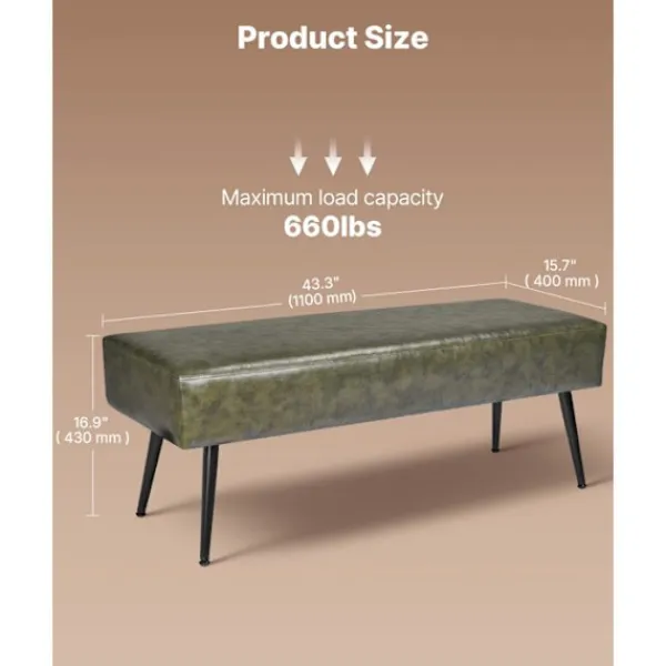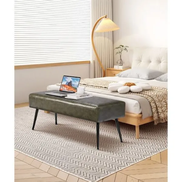 Denna PU-läderbänk från DUOKU, som mäter 110 x 40 x 43 cm, kombinerar modern stil och funktionalitet. Med en kapacitet på 300 kg är den perfekt för sovrummet, hallen eller vardagsrummet. Dess robusta struktur i järn och trä, dess D28-skumkudde och det lättskötta ytskiktet gör den till ett idealiskt val för alla inredningar.
