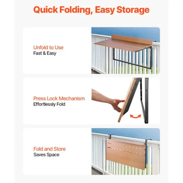Detta hängande bord DUOKU är perfekt för din balkong. Fällbart och justerbart i 5 nivåer, passar det räcken från 2,5 till 13,5 cm. Tillverkat av rostfritt stål, mäter det 100 x 48,5 cm och är perfekt för utomhusbruk. Dess rektangulära design och bruna färg smälter harmoniskt in i din trädgård.
