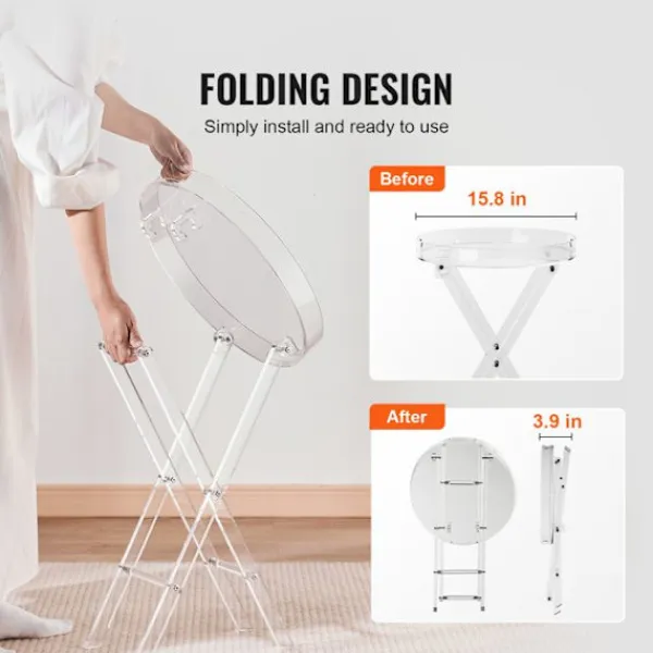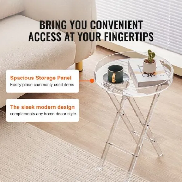 Detta sidobord i klart akryl från DUOKU mäter φ400 x 580 mm. Med en modern design och ett vikbart X-ställ är det perfekt för vardagsrummet. Dess struktur i plastkomposit klarar upp till 10 kg samtidigt som det är lätt (1,7 kg). Perfekt för dina kaffedrycker och andra drycker.