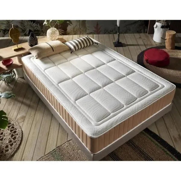 Vår Visco Serenity-madrass är designad för att varje sovare ska få maximal komfort. Med sitt minnesskum och ett medelhårt centralt stödsystem ger den det stöd som behövs för de viktigaste punkterna i din kropp, från fötterna, magen, ryggen och slutligen huvudet. Med sin COVER TO COVER-polstring och andra komponenter tillhör den den nya generationen madrasser utan fjädrar och är en av våra högkvalitativa modeller som garanterar kvalitet och excellens. Tekniska specifikationer: Höjd: tjocklek 22 cm +/-2. Fasthet: medelhård-hård. Överpolstring: 4 cm visco + supersoft High Density HR Core: denna madrass representerar den nya generationen madrasser tillverkade utan fjädrar. Det skum vi använder gör att madrassen alltid återfår sin ursprungliga form. Behandlingar och regleringar av våra madrasser: Hygienfunktion Sanitized® (specialist på antimykrobiell behandling av textilier) som skyddar madrasser mot mögeltillväxt och alger, minskar närvaron av kvalster och erbjuder långvarigt skydd. Fuktavvisande: Den är tillverkad med ett avancerat tyg som möjliggör optimal luftcirkulation, vilket förhindrar uppbyggnad av fukt och håller madrassen vädrad, vilket skapar den perfekta temperaturen under din sömn. Våra madrasser är skapade för att upprätthålla en korrekt justering av vår ryggrad medan vi vilar. Alla tyger som vi använder för att tillverka dessa madrasser är i enlighet med OEKO-TEX® Standard 100-regleringen (produkter fria från skadliga substanser). Madrassen levereras rullad och vakuumförpackad. 2 års garanti. Tillverkad i Spanien.