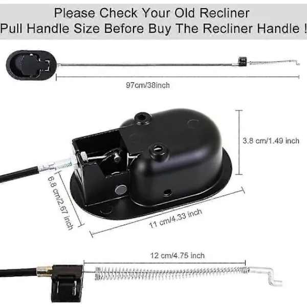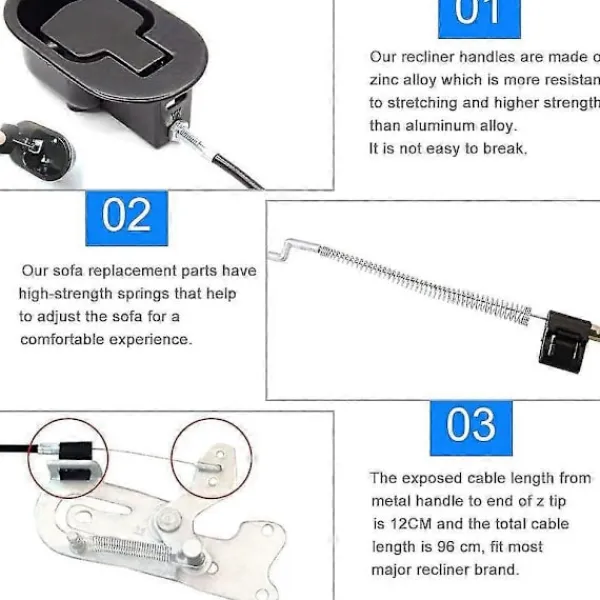 Universella sofftillbehör: Detta långa kabelrulle-soffans frigöringshandtag passar de flesta stora märken och modeller av vilstolar som Ashley, Lazy Boy Soffa, Glider, Rocker Lounge Chair, Loveseats, Lane Soffa och mer.