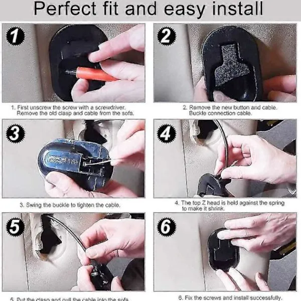 Snabb installation: Ta först bort den gamla kabeln och spaken, anslut sedan ena änden av kabeln till handtaget med två skruvar, installera sedan det nya klipset och Z-kroken. Installationen tar bara några minuter, mycket enkelt.