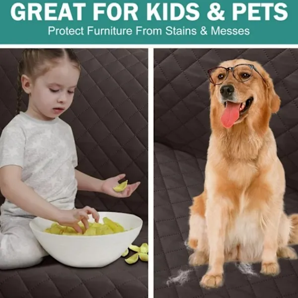 Vi älskar att det är vändbart, så du kan verkligen ha två överdrag i ett. Det finns i tre sofflängder och rymmer även stora soffor (upp till 86 tum). När du är klar viker du bara ihop det och lägger undan det. Bäst av allt är att detta överdrag har halkfri teknik för att förhindra att det rör sig medan du sitter på det. Detta är ett perfekt alternativ när dina barn har kompisar över eller du tar hand om ett husdjur!