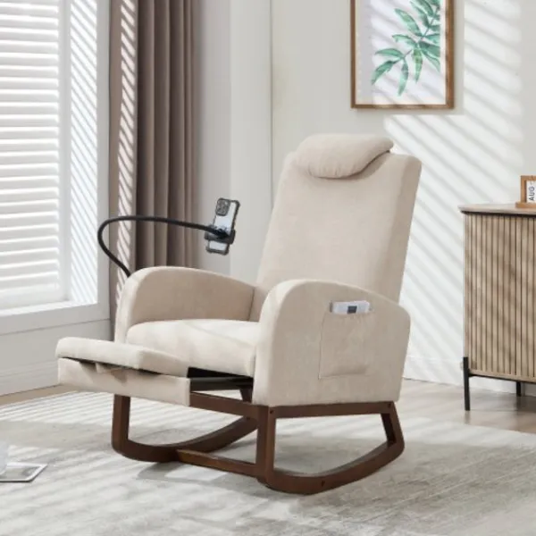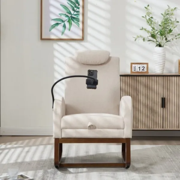 Mångsidig användning – Perfekt för vardagsrum, sovrum, kontor, läshörna eller uterum – denna gungstol passar många inredningsstilar från modernt till klassiskt.