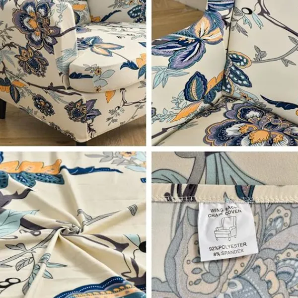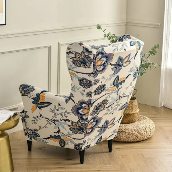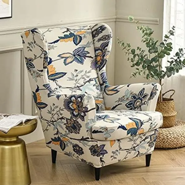 1-del stretchöverdrag för fåtölj med vingar, med T-kuddeöverdrag, halkfritt fåtöljöverdrag, för vardagsrum, hotell, sovrum (Kornvallmoblomma)