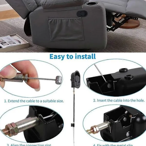 [Universal Fåtöljdel] Soffans Frigöringshandtag Storlek är 3,5 tum x 3 tum, Metallhandtag med Lång Vajer (Exponerad Vajer Justerbar 4,7 tum till 5,2 tum), Den passar de flesta stora möbel- och fåtöljmärken, för Ashley, Lazy Boy. [Robust och Hållbart Metallhandtag] Metallsoffans Frigöringshandtag Tillverkat av Aluminiumlegeringsmaterial och Mycket Mer Hållbart Än Det Ursprungliga Plasthandtaget. [Handtags- och Vajerstorlek] Handtagets utsida är 2,7 tum x 4,4 tum och höjden är 1,46 tum. Total vajerlängd (yttre handtag) är 32 tum. Exponerad vajerlängd Justerbar: Från 4,7 tum till 5,2 tum. Mät din befintliga fåtöljspaks storlek för att säkerställa att form, storlek och typ är kompatibla. Vänligen mät noggrant innan du köper. den passar 6 mm och under 6 mm cylinderformad vajerände. [Lätt att Installera] Även utan några manuella färdigheter kan du slutföra reparationen av vårt fåtöljdraghandtag och vajer på 10 minuter eller mindre, allt du behöver är bara en stjärnskruvmejsel och en spetstång