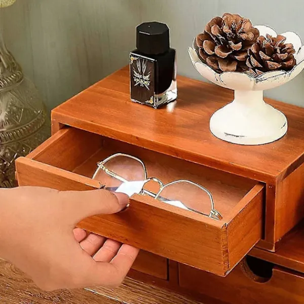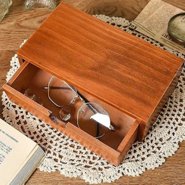 2. Enkel: Denna trälåda har förvaringslådor i trä och hål för att släppa ut och frigöra.
