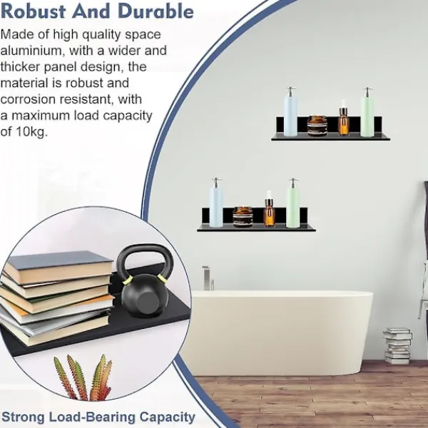 Utrymmesbesparande och städadDenna svarta väggmonterade hylla låter dig effektivt använda ditt väggutrymme för att spara utrymme och skapa en städad miljö. Den ger ytterligare förvaringsutrymme där du kan placera olika föremål som böcker, dokument, små dekorationer och växter. Dessutom hjälper den flytande hyllan dig att snabbt hitta dina nödvändiga föremål och gör ditt liv bekvämare.