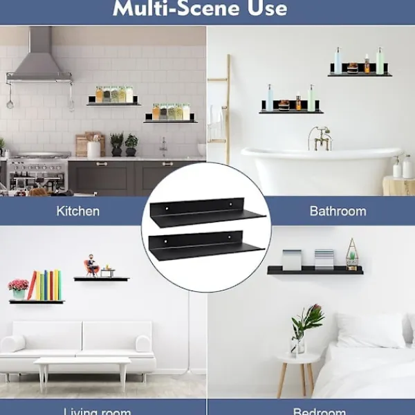 Brett användningsområdeDenna svarta metallvägghylla är lämplig för olika rum och applikationer. Du kan installera den i sovrum, kontor, vardagsrum, kök, badrum och andra kommersiella utrymmen för att visa olika föremål. Den 30 cm svarta vägghyllan med kant är perfekt för att visa konstverk, skivalbum, fotoramar, böcker och leksakssamlingar.