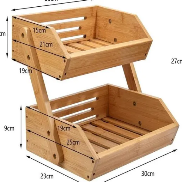 【2 Tier Bamboo Fruit Basket】 2-tier design is very convenient to take your items out, perfect solution for daily storage and saves space, keeps your kitchen and dining room well-organized and tidy. The 2 tier fruit basket is large enough to storage a variety of items.
