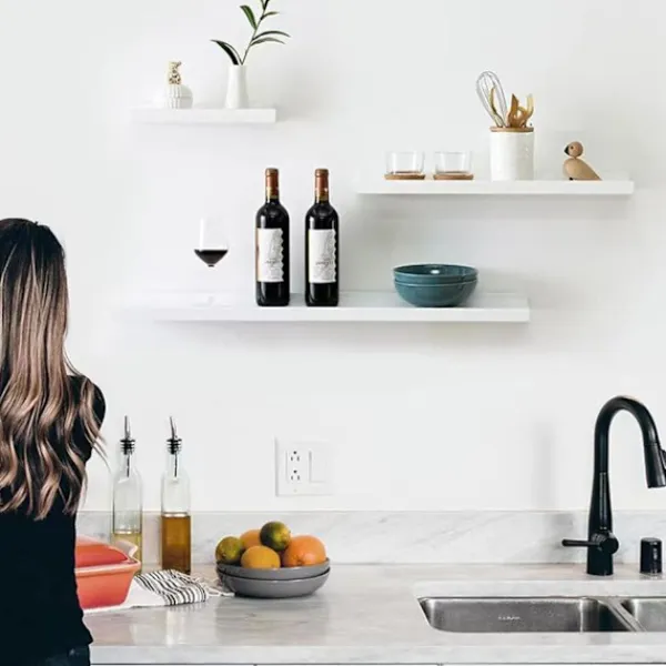 【Praktisk】De dekorativa och funktionella flytande hyllorna kommer att fylla de tomma utrymmena på väggen väl, maximera användningen av dina väggar för att skapa display- och förvaringsutrymme och minska röran på bänkskivan. Den kan användas för att placera toalettartiklar, krukväxter, böcker, ornament etc.