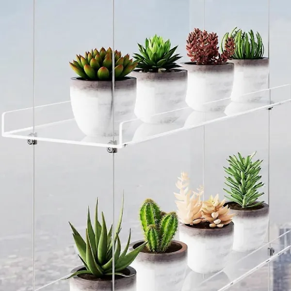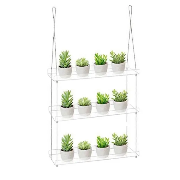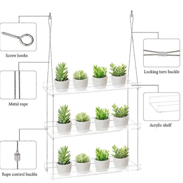 Utrymmesbesparande: Den eleganta, transparenta designen på den hängande växthyllan kompletterar alla inredningsstilar. Den är perfekt för att visa upp 3-5 små krukor, örter och suckulenter, och kan även hängas i badrum, vardagsrum och sovrum för att förvara små föremål.