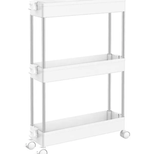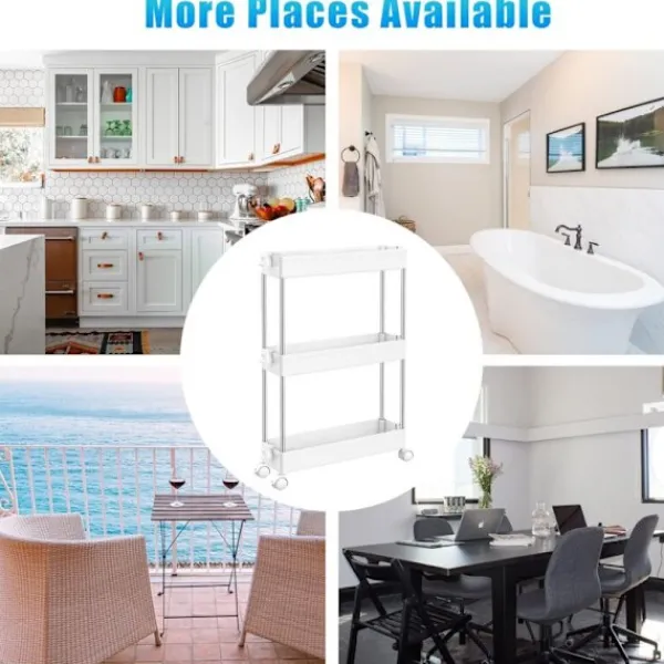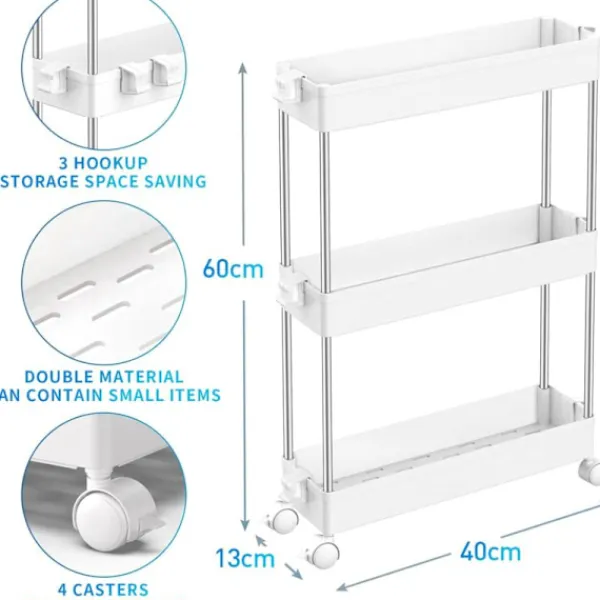 【Stor kapacitet och flexibilitet】 Den 3-vånings smala förvaringsvagnen är perfekt utformad för begränsat utrymme hemma. Denna rullande köksvagn är idealisk för kök, badrum, garage, tvättstuga, kontor, sovsal, bibliotek eller mellan tvättmaskin och torktumlare. Lätt att placera och flytta. Storlek: 13 x 61 x 40 cm.