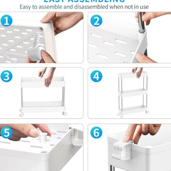【Multifunktionell vagn】 Förvaringsvagnen passar var som helst i ditt hem, vilket gör det mer städat och bekvämt. Använd den som vagn, badrumvagn, köksvagn, matvagn, serveringsvagn, förvaringsställ, verktygsvagn och mer. Du kan rymma vad du vill, t.ex. B. Toalettartiklar, handdukar, hantverk, växter, verktyg, matvaror etc. Detta hjälper till att organisera och transportera dina tillhörigheter bekvämt och eliminera röran.