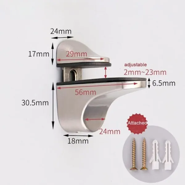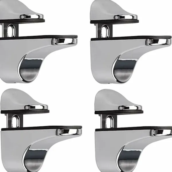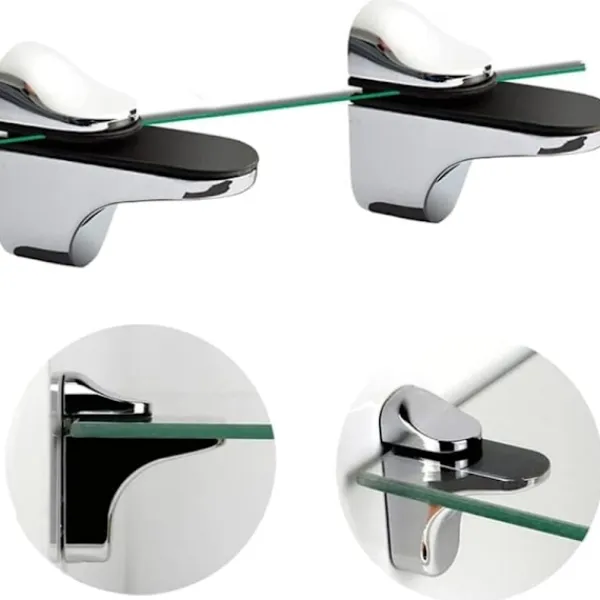 Högkvalitativt material – Justerbart glashyllfäste Högkvalitativ konstruktion av solid zinklegering, vilket garanterar kvalitet och livslängd i fuktiga miljöer. Imponerande polerad ytbehandling, bekväm beröring.