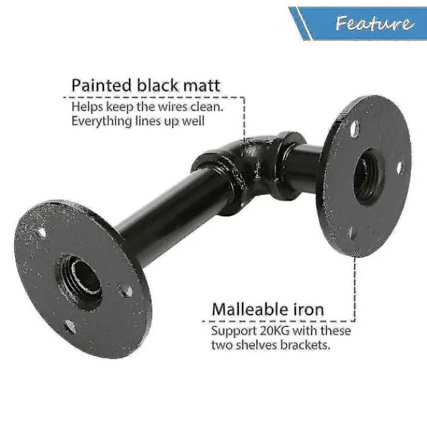 Produktbeskrivning4X Rörhyllkonsoler Industriell Järn Rustik Vägg Flytande Hyllor FörvaringsenhetHÖG KVALITETSMATERIAL: Vår vägghylla är tillverkad med hållbara industriella rörkopplingar. Tillverkad av utvalt järnmaterial, stark hårdhet, fast, hållbar och pålitlig, inte lätt att bryta. Dessa flytande hyllors yta är slät, korrosionsbeständig, rostskyddad och anti-syra. Borstat utseende kommer inte att rosta. Mer hållbar och kan placeras i fuktiga utrymmen. Ihåligt rör och kan hålla tråd i det. STORLEK: Rörhyllkonsolers storlek: flänsdiameter: 65 mm, kort arm: 80 mm (inklusive fläns och armbåge), lång arm: 150 mm (inklusive fläns och armbåge). 4 st Hyllkonsoler, skruvar ingår. STARK HÖG BELASTNING: Dessa flytande hyllkonsoler är utformade för att vara tillräckligt solida. Flexibel design. Utnyttja ditt utrymme maximalt med hyllor som passar perfekt. Kraftig och robust. Industriell retrodesign, perfekt för din heminredning för att visa loft steampunk-stil. Perfekt för att hålla böcker, växter, burkar, flaskor, skor etc. SPARA UTRYMME: Dessa väggmonterade konsoler är lämpliga för begränsade utrymmen, håll ditt rum organiserat. Spara ditt rum, klä upp din tomma vägg. Dessa gjutjärnshyllor placeras i vardagsrum, sovrum, arbetsrum LÄTT ATT INSTALLERA Det är enkelt att installera Molain rörhyllkonsol med 4 väggkonsoler och monteringsdetaljer som ingår i varje förpackning. Delarna av svarta hyllkonsoler kan monteras direkt, men när du monterar de monterade hyllkonsolerna på väggen eller träskivan måste du stansa väggen/skivan och installera den vintage hyllhållaren med skruvar. Paketet innehåller: 4 X rörhyllkonsol (inkluderar tillbehör)_tfrf