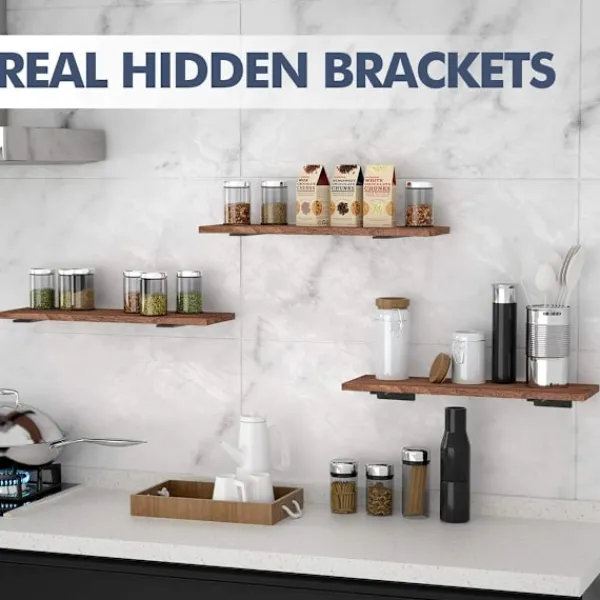 Riktiga Dolda Konsoler: Dessa svarta hyllkonsoler har inga kanter och kan döljas helt. Basen kan blockeras av plankan, vilket skapar en fantastisk flytande illusion. Jämfört med andra flytande hyllkonsoler är denna konsol enklare att installera.