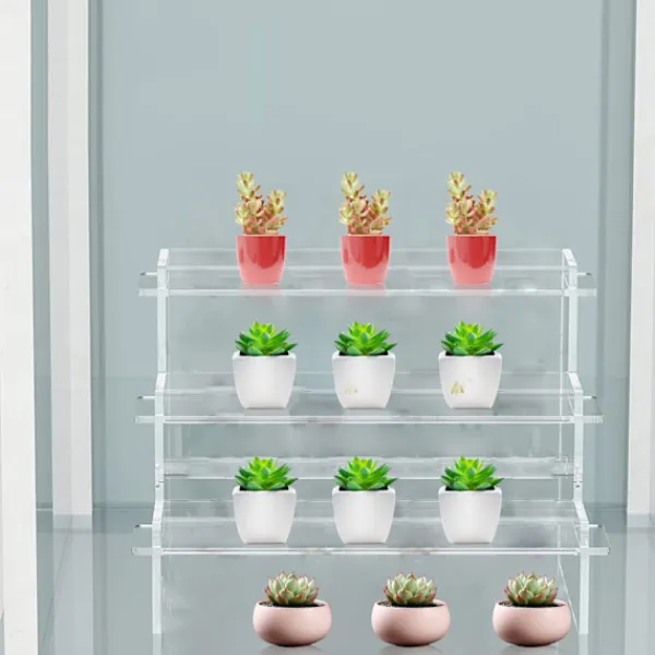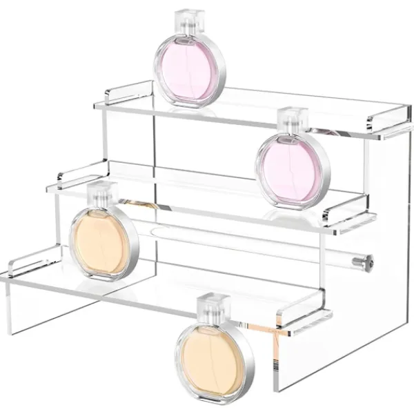 Hyllor>Transparent akryl trelagers parfymförvaringsställ, handgjord dockskåps smyckes cupcake displayställ 15,3 * 19,3 * 24cm