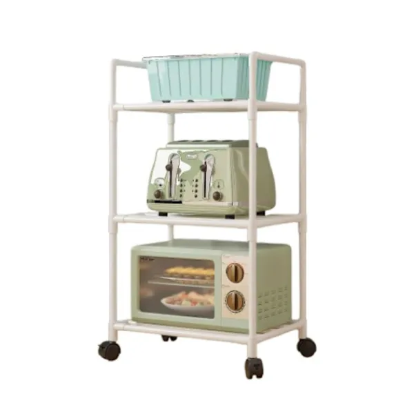 Denna flyttbara köksförvaringshylla är utrustad med hjul, vilket gör den enkel att flytta runt i köket eller till andra rum. Detta är särskilt användbart vid städning eller om du behöver omorganisera ditt kök. De tre lagren ger gott om plats för att förvara olika föremål, från matvaror till köksmaskiner. Denna hylla är en perfekt kombination av funktionalitet och bekvämlighet, vilket gör den till en oumbärlig del av ditt kök.