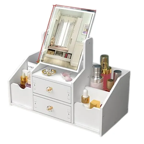 - Multifunktionell: Makeuporganisator och sminkspegel