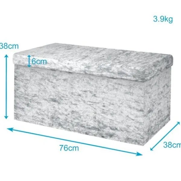 Den eleganta sammetsklädseln på utsidan och det mjuka tyget på insidan av denna praktiska vikbox / puff får den att se väldigt lyxig ut och garanterat dra blickarna till sig!
