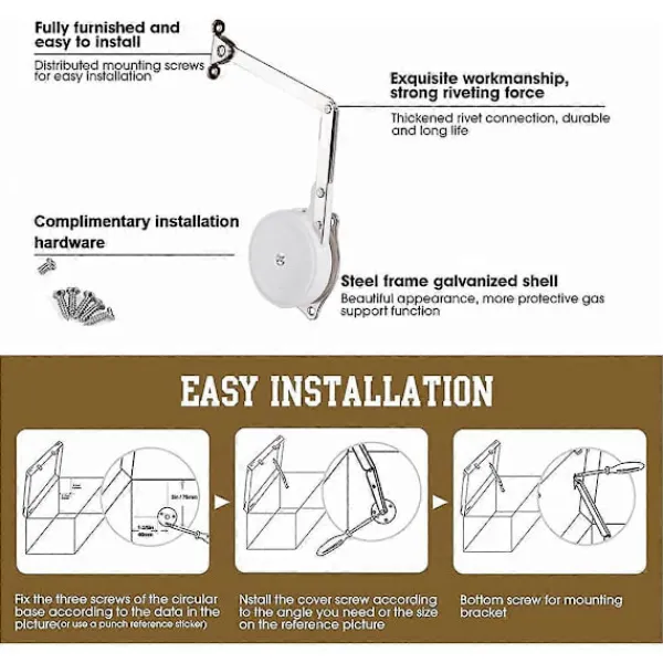 Med mångsidiga installationsalternativ kan vårt lockstöd fästas på antingen vänster eller höger sida och är kompatibelt med locköppningsvinklar från 90 till 105. Denna flexibilitet gör att du kan hålla locket i valfri vinkel för åtkomst och bekvämlighet.