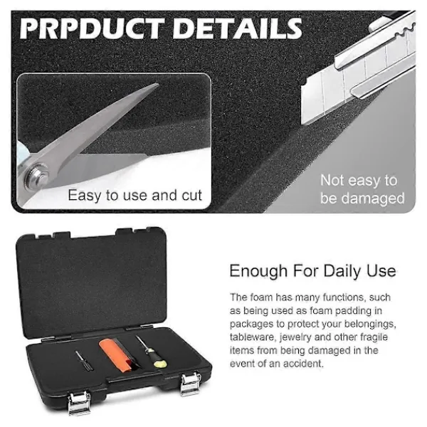Lätt att använda: Våra polyuretanskumdynor är helt skärbara, du kan designa dem efter den storlek och form du behöver, de kan användas för att förvara ömtåliga och viktiga föremål, så att dina föremål kan skyddas säkert i förvaringslådan.