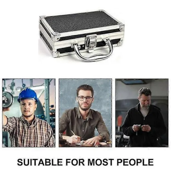 Huvudsakligen tillverkad av lätt aluminiumlegering, den har utmärkt textur och kan användas under lång tid. Den har ett brett användningsområde och kan användas väl för storskaliga aktiviteter som fester och affärsresor. Utmärkt utförande, inte lätt att skada, lämplig för alla typer av verktyg, praktisk. Lätt att använda, lätt att förvara, kan ge dig bekvämlighet, du kommer att få en bra upplevelse. Rimlig design gör att den har en stor kapacitet, vilket väl kan tillgodose dina lagringsbehov. Namn: Praktisk aluminiumväska Vikt: ca 260g Färg: Silver & Svart Material: Aluminiumlegering Storlek: 180mm x 110mm x 55mm Paketets innehåll: 1 * Väska Endast ovanstående paketinnehåll, andra produkter ingår inte. Obs: Ljusreflektion och olika skärmar kan göra att färgen på föremålet på bilden skiljer sig något från den verkliga varan. Det tillåtna mätfelet är +/- 1-3 cm.