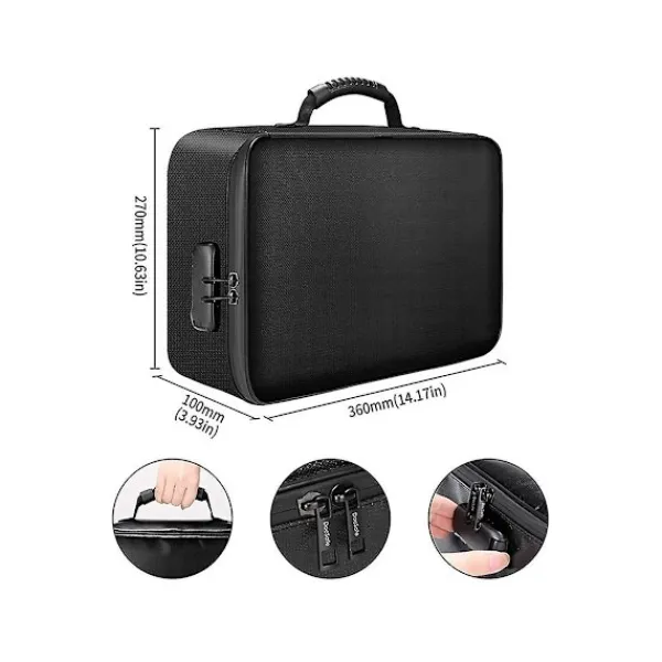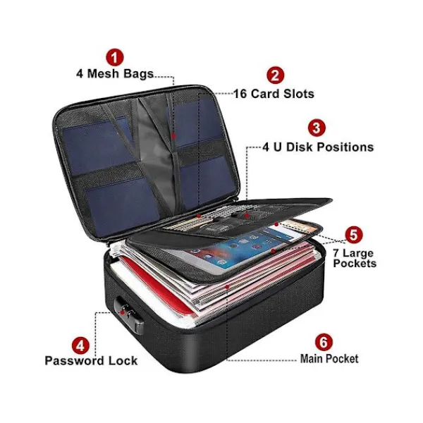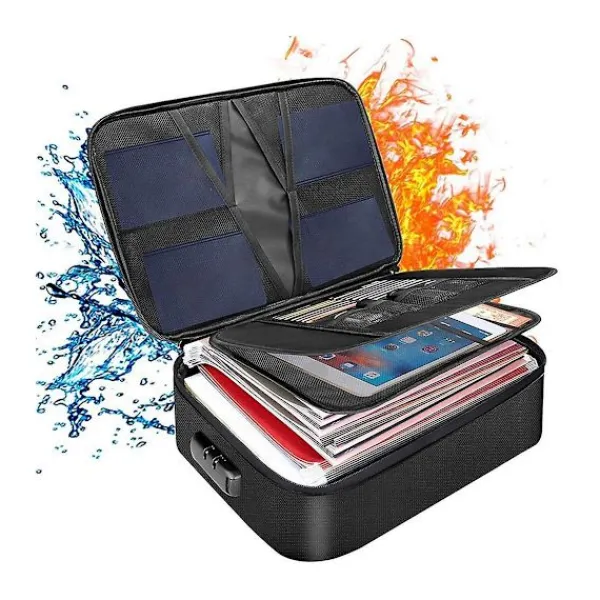 [Brandsäker och Vattentät] Den brandsäkra filboxen är tillverkad av dubbelskiktad, icke-silikonbelagd glasfiber, som tål temperaturer upp till 2000F. Brandsäkra filboxar är inte bara brandsäkra, de är också mycket vattenresistenta, vilket håller innehållet torrt, rent och skyddat vid brand. [Perfekt Förvaringsdesign] Storlek: 270x100x360mm. Låsbar filbox passar för att hänga brev och juridiska storleksfilmappar. Rymliga fack rymmer viktiga föremål som viktiga dokument, filmappar, serietidningar, CD-skivor, födelsebevis och andra värdesaker. Det övre facket har flera nätfickor, kortfack och fack för att hålla dina USB-minnen, pass, kort organiserade och lätta att hitta. [Förbättrad Hållbarhet] Med högkvalitativ kombinationslås och hållbar metallblixtlås kan den säkert skydda dina värdesaker i eller , ingen anledning att oroa sig för att främlingar öppnar din förvaringslåda . Hela lådans kropp är förstärkt för att förbättra styvheten, vilket gör filförvaringslådan superstabil, och du kan stapla flera lådor tillsammans utan att oroa dig för att de ska krossas. [Bärbar och Platssparande] Sidan och toppen av den brandsäkra lådan är designade med starka handtag för enkel lyftning, du kan sätta den i ditt hem, kontor, bil, etc. Användbara kortfack gör att du enkelt hittar allt. När den inte används, använd vikfunktionen för att förvara den hopfällbara filboxen – platt och snyggt. [Vad du får] 1-stegs låsbar förvaringslåda. Vårt mål är att skydda dina viktiga hem- och företagsdokument samtidigt som du håller dig organiserad. Den passar snyggt på ett bord, en hylla eller varhelst den är tillgänglig. Om du har några frågor, kontakta oss, vi kommer att lösa ditt problem så snart som möjligt.