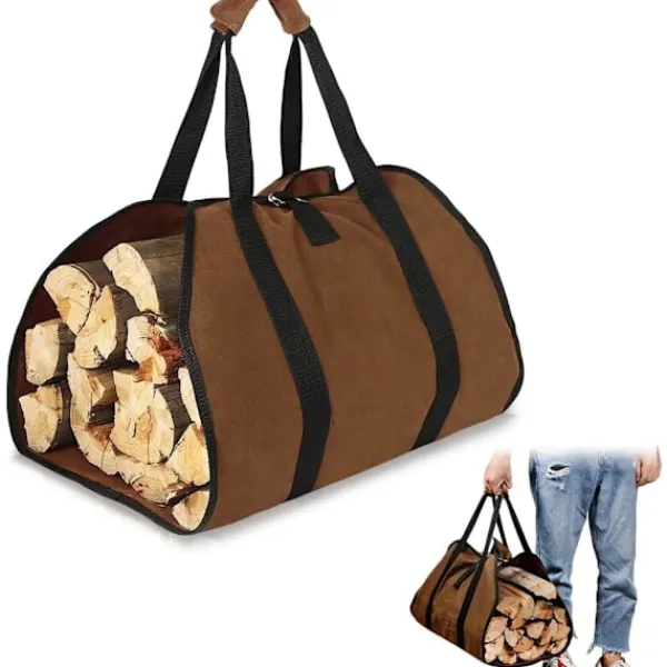【Bekväm att Använda】Våra canvasbärväskor är utrustade med förstärkta och vadderade handtag för ett bekvämt grepp som skyddar dina händer när det finns mycket ved i väskan. Med en justerbar mittrem för att säkra och dra åt stockarna under lastning. Handtagsremmen går runt hela bärväskan, vilket gör att den kan hantera tunga laster utan att gå sönder.