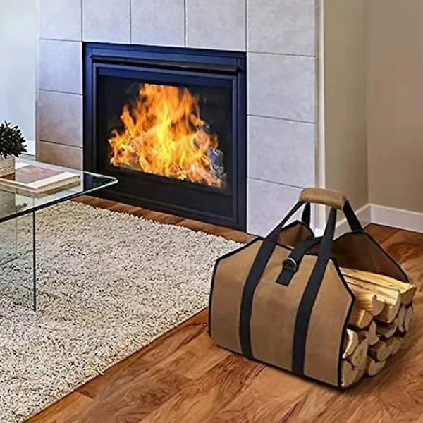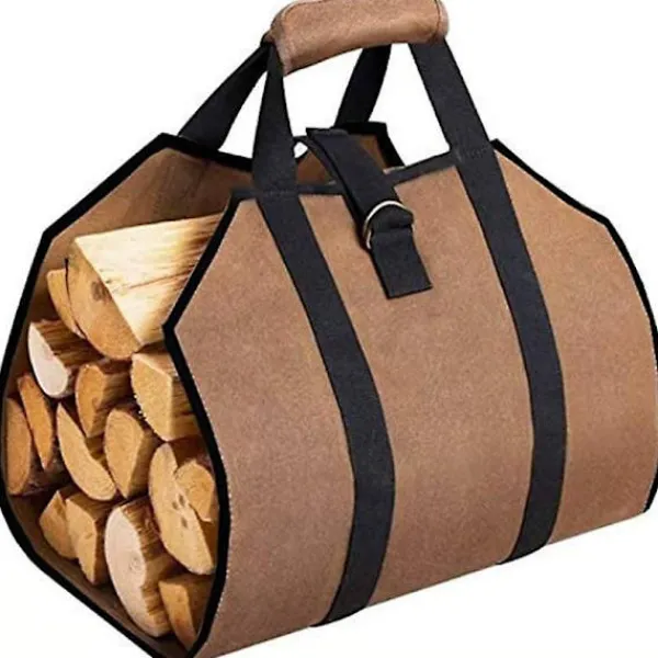 Överlägsen styrka: tillverkad av duk och extra bred 4,1 cm förstärkt nylonband, stöder handtag och alla stresspunkter runt träväskan. Lägg till ännu mer dubbelsydd yttre kant runt varje utseende för extra stabilitet.Snygg design: Helt sluten design håller ved, bark, smuts, skräp i väskan och utanför ditt golv.